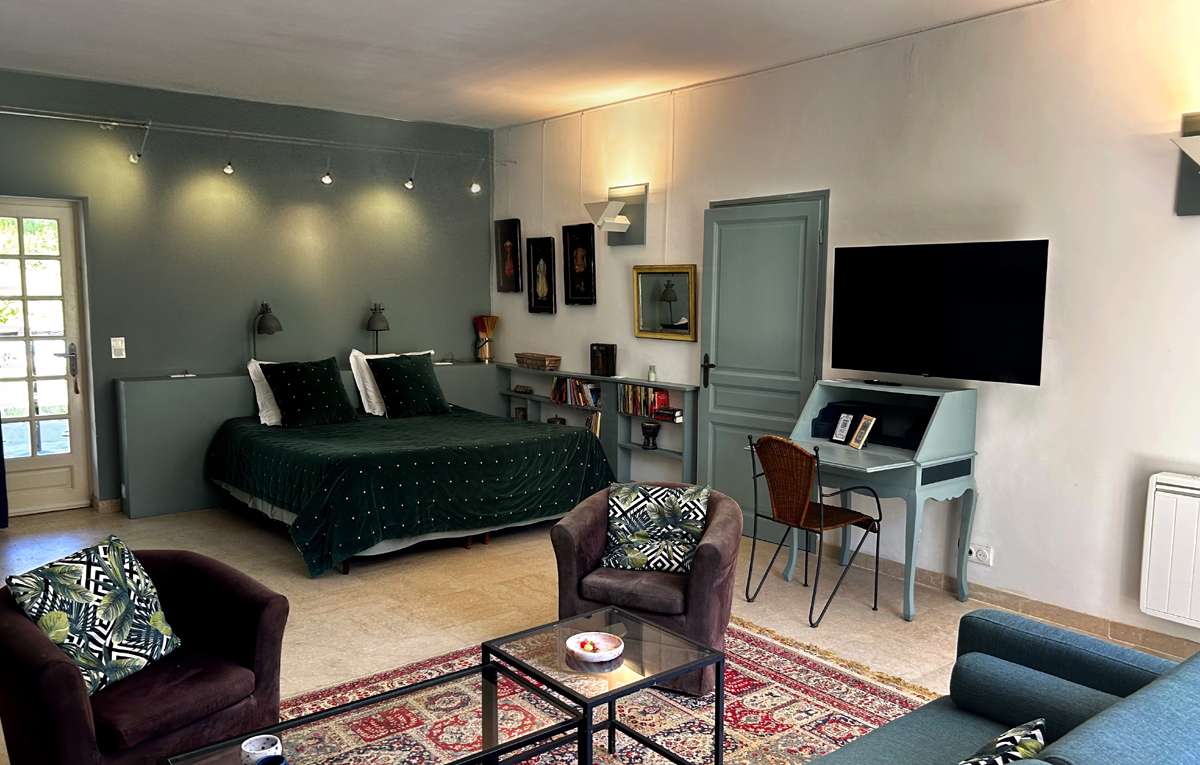 La dépendance (RdC) avec Salon-SàM / Cuisine / Chambre / SdB / 2 WC :