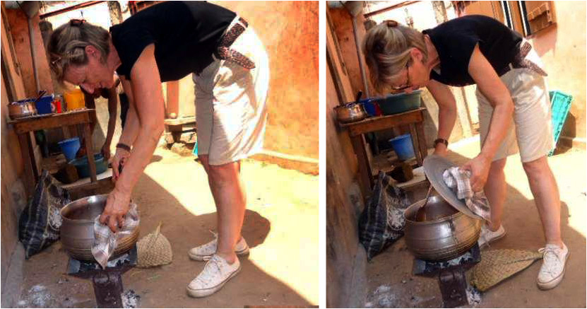 Ce matin, je trouve Adjila dans un grand état de tristesse ; je n’ose pas lui demander ce qui ne va pas… et je rejoins les filles à l’arrière de la maison. Nous nous attaquons aux tâches quotidiennes. Il faut savoir qu’elles commencent à 5h30 le matin !