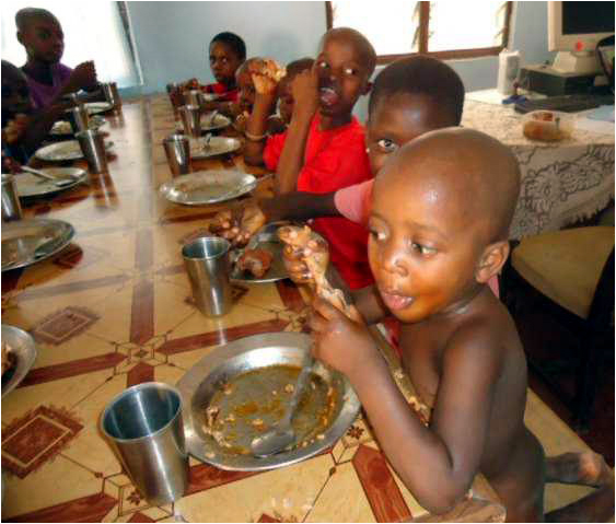 Bref, je rentre avec mon poulet et je fais la cuisine : poulet sauce tomate… pas trop compliqué. Ils ont aimé, tant mieux ! C’était rigolo de voir tous ces petits en train de ronger leur os de poulet…En fait, c’est pas si rigolo que ça, ils mangent comme si c’était un dessert quand on ajoute une viande ou un poisson à leur plat quotidien. Ils le gardent toujours pour la fin, mais voilà…