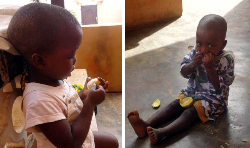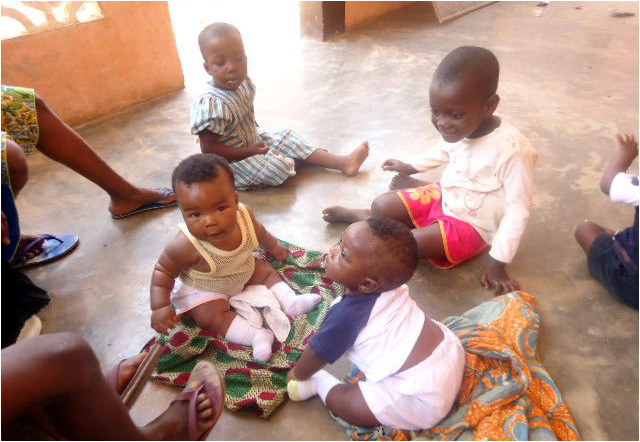 Les filles sont sur la terrasse avec les bébés ; Gloria me dit : Viens voir ! Il faut que je te montre, mon Christian (4 mois) il a « chié » bizarre toute la nuit ! Et là, elle ouvre un pagne et effectivement, je constate… Bonjour les filles, dis-je, la journée commence bien ! Je lui demande ce qu’elle lui a donné à manger mis à part son lait puisqu’elle l’allaite et elle me répond « du miel et du citron puisqu’il tousse !!! »Inutile de chercher plus loin le dérangement intestinal du petiot. Je lui explique qu’à cet âge, on évite ce genre de traitement un peu radical…