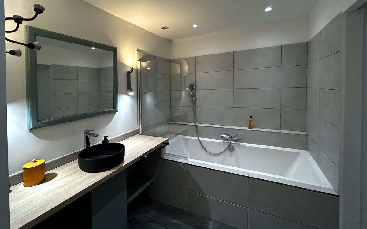 La dépendance (RdC) avec Salon-SàM / Cuisine / Chambre / SdB / 2 WC :
